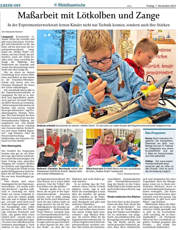 Mittelbayerische Zeitung Lötkurs vom 1.11.2024: